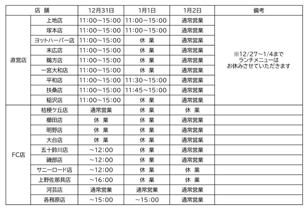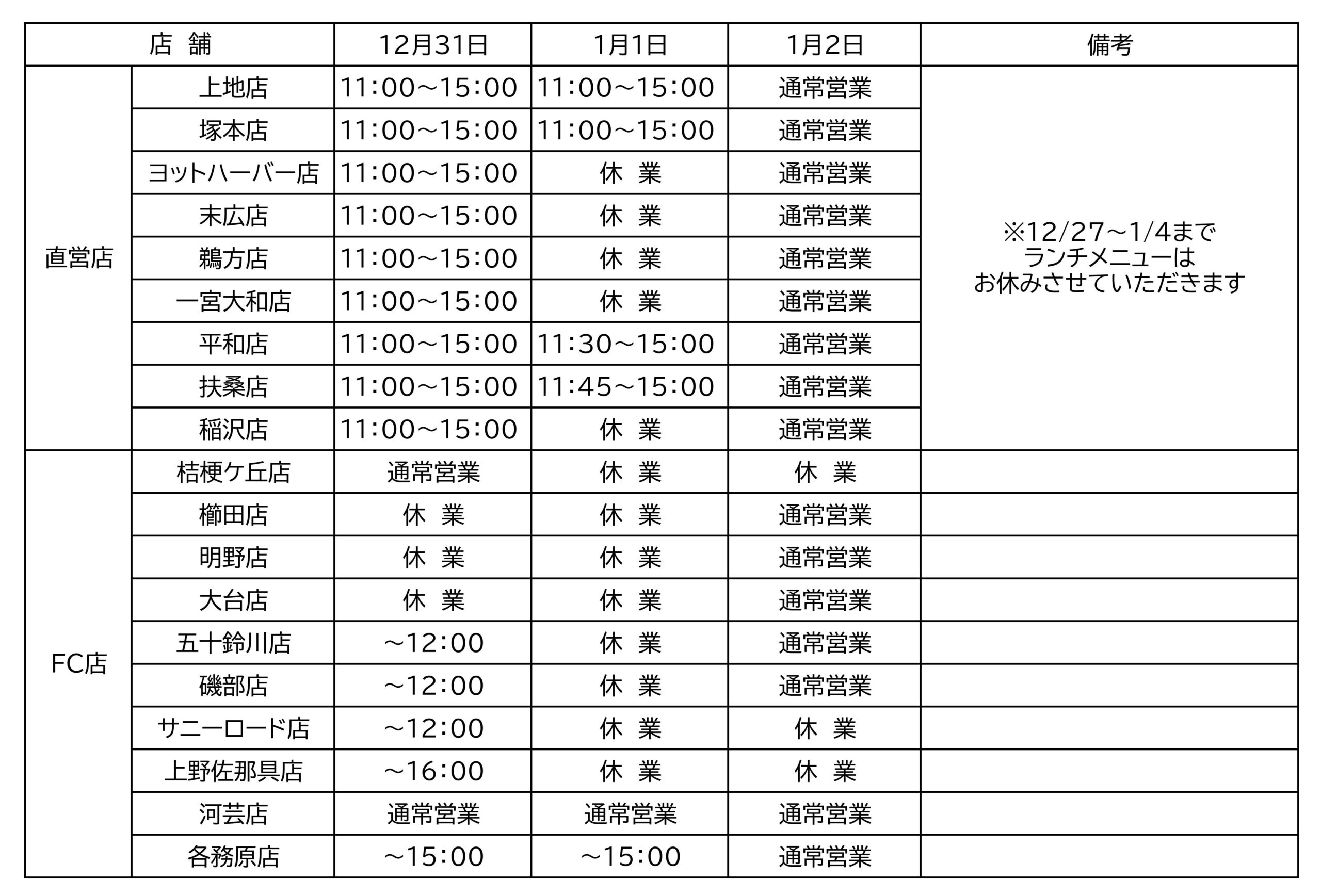 誠に勝手ながら、年末年始は下記の通り営業時間を変更させていただきます。