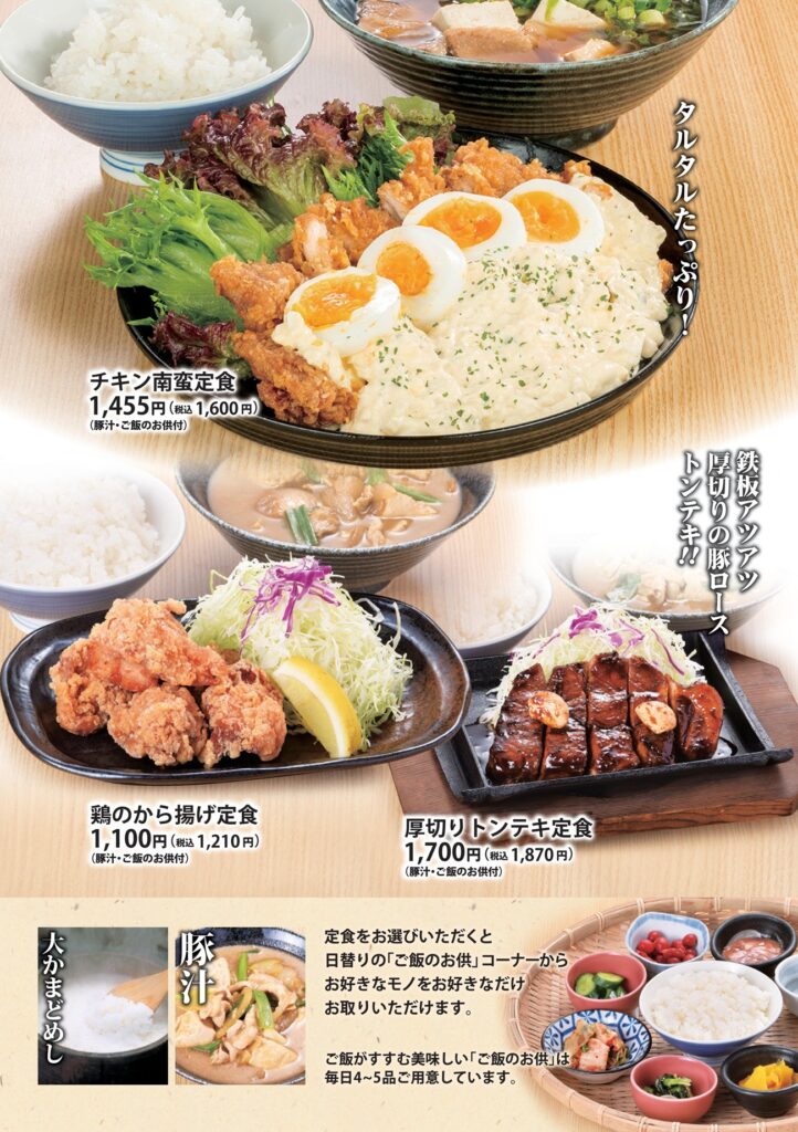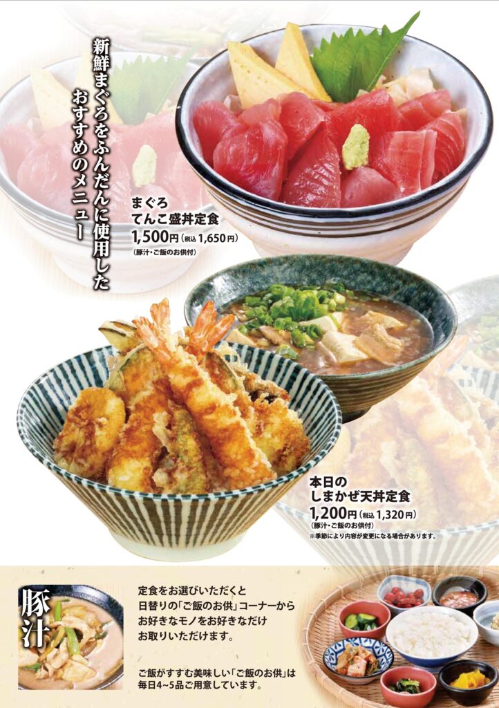 ご飯のお供・豚汁・大かまど飯・新鮮刺身